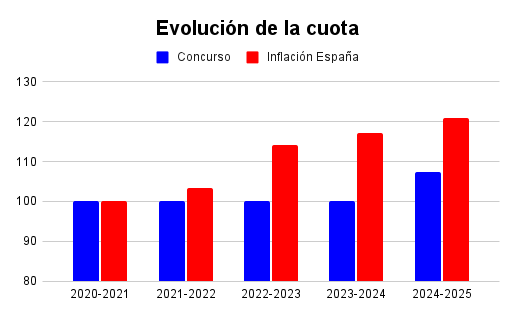 La cuota de participación es de 4,3 € por alumno (ver condiciones particulares para Islas Canarias, Islas Baleares, Ceuta y Melilla).